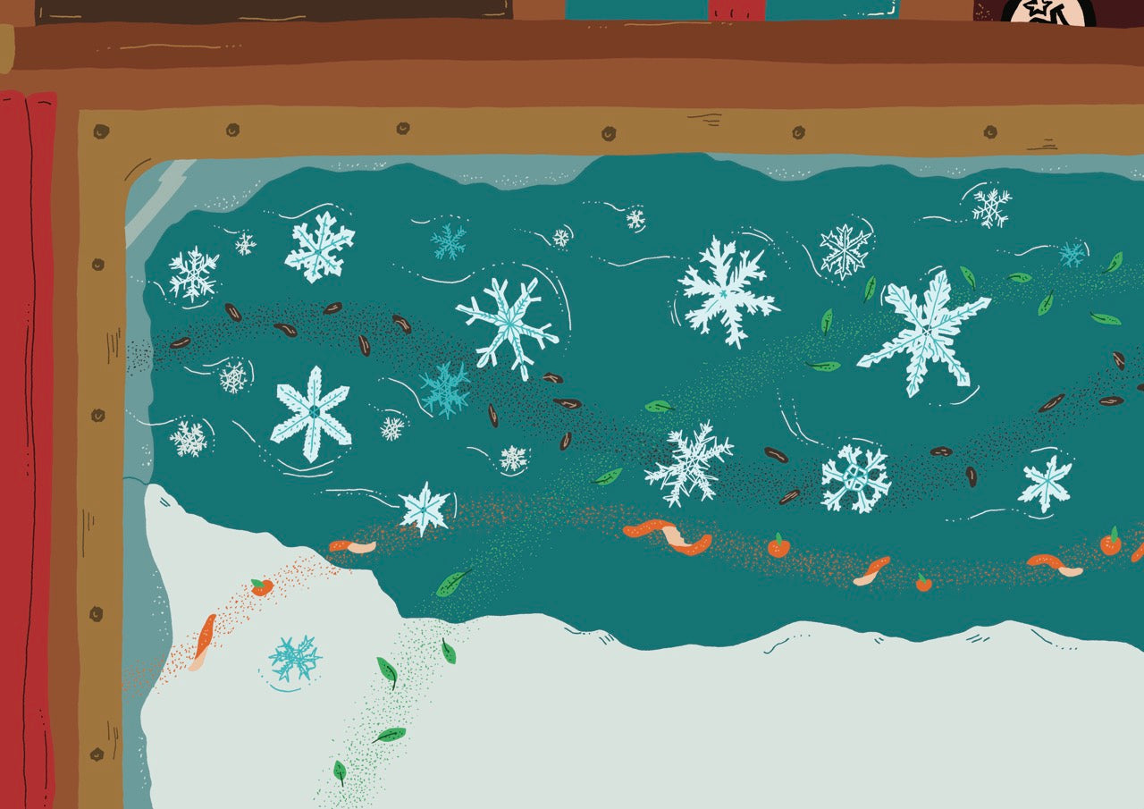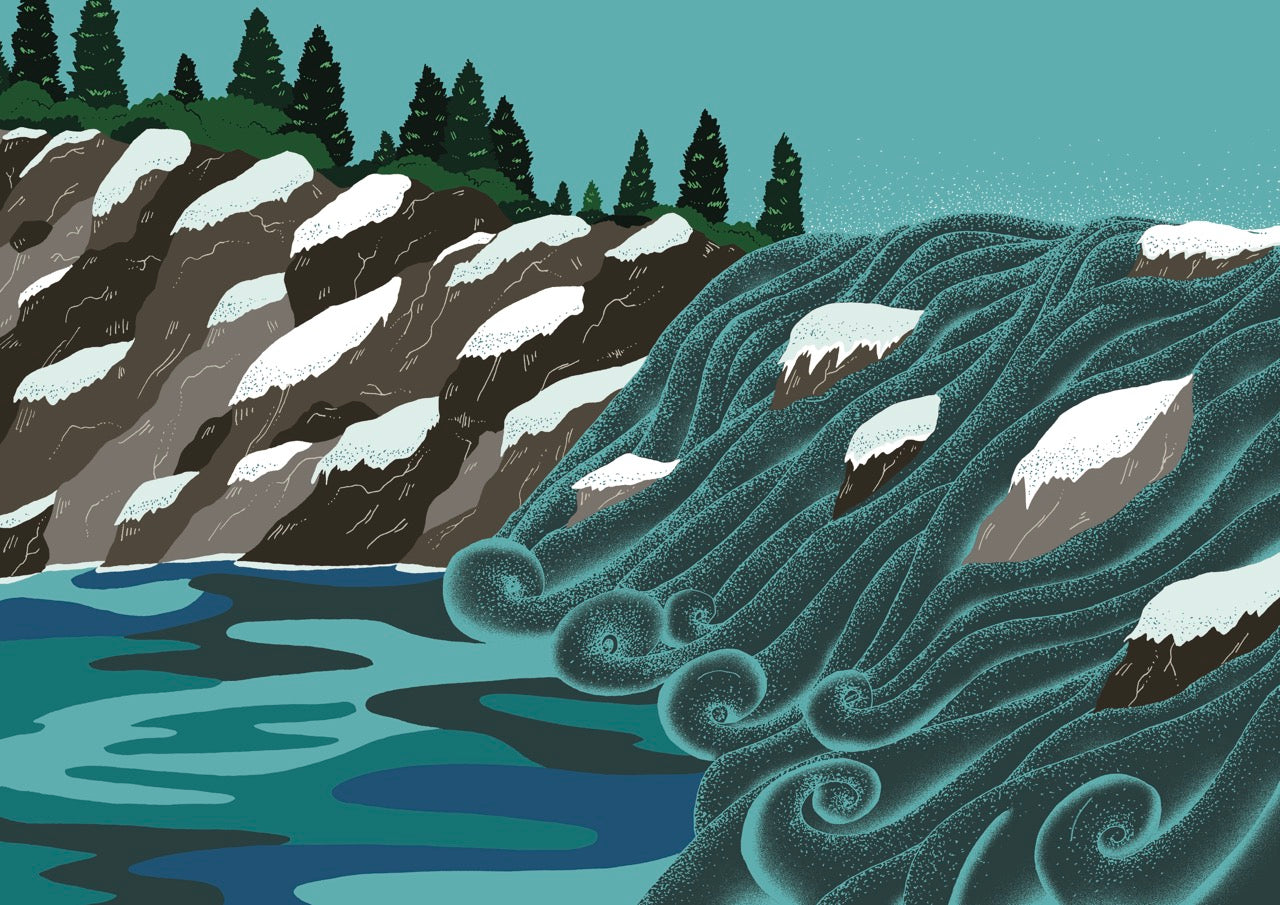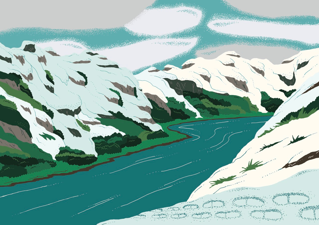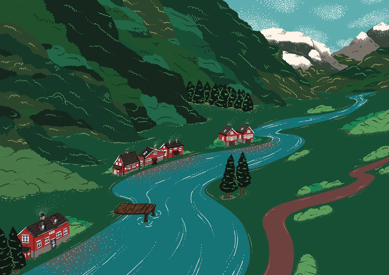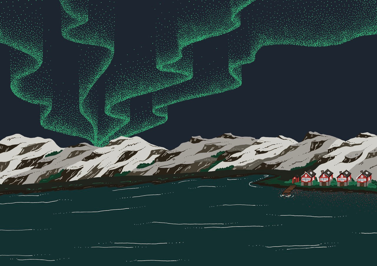 A 2015 graduate of ESAG Penninghen, she creates a world that blends bold blocks of colour with a light, elegant line. With plant-inspired swirls, fantastical animals and an abundance of flowers, she is drawn to the shapes and colours found in flora and fauna, and each of her illustrations becomes a world of its own. For the Flåm fragrance, she has recreated an enchanted fjord, a snow-covered Norway where the colours of the Northern Lights dance between the red roofs of the fishermen’s cottages: like a magical painting in which one would love to settle.