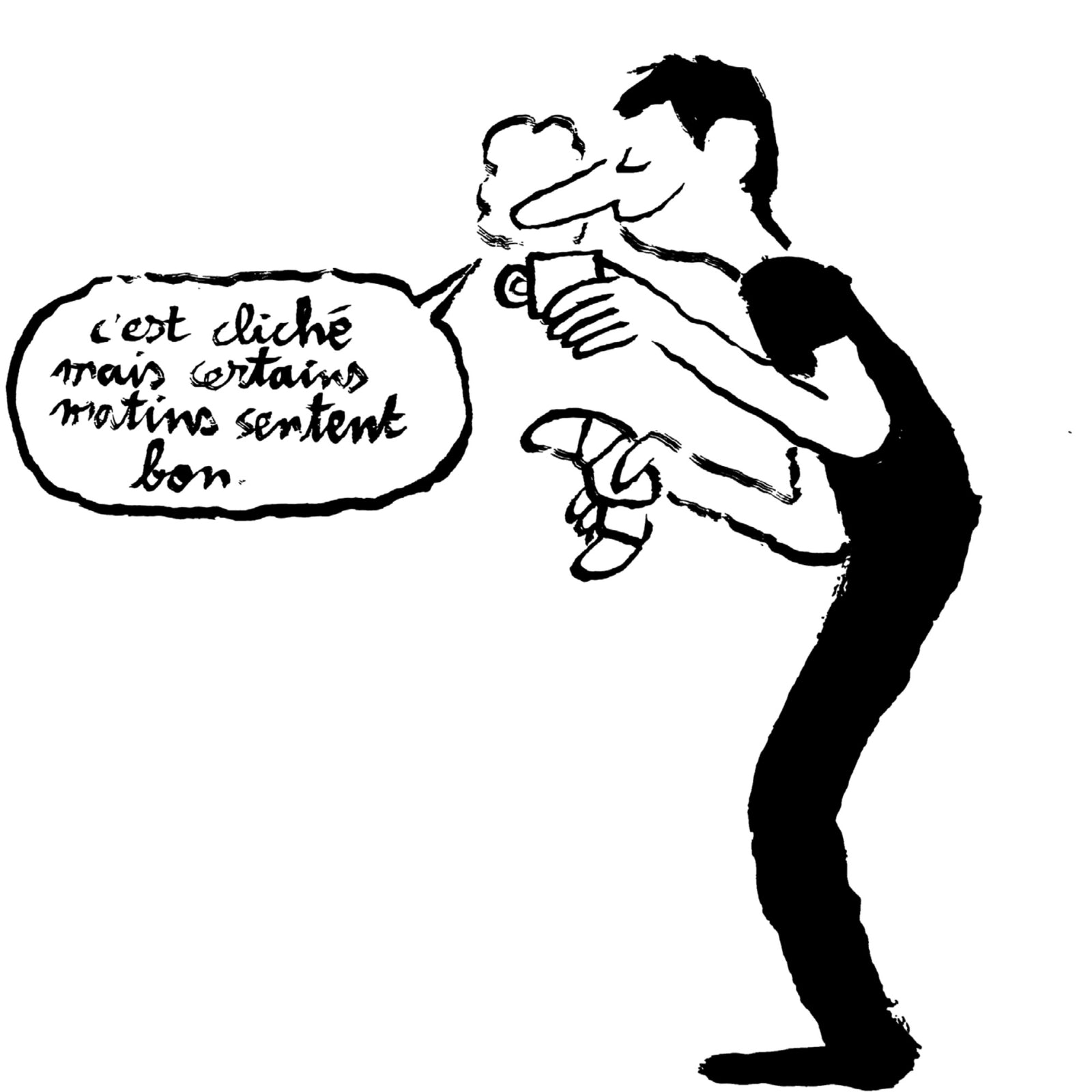 A prolific French artist, he enjoys observing people and their interactions with their surroundings, which provide him with inspiration for his work. A character resembling himself often appears in his drawings, and he delights in capturing moments as they happen. The spirit of the times is evident in his drawings, which display a delicate sense of the situation, as well as in his paintings of landscapes and skies. For Odéon, he chose to paint the majesty of a Parisian sky tinged with pink and to sketch a flâneur moved by the promise of a morning in the city.