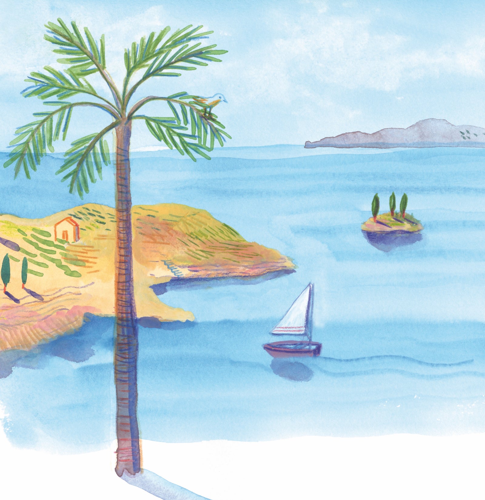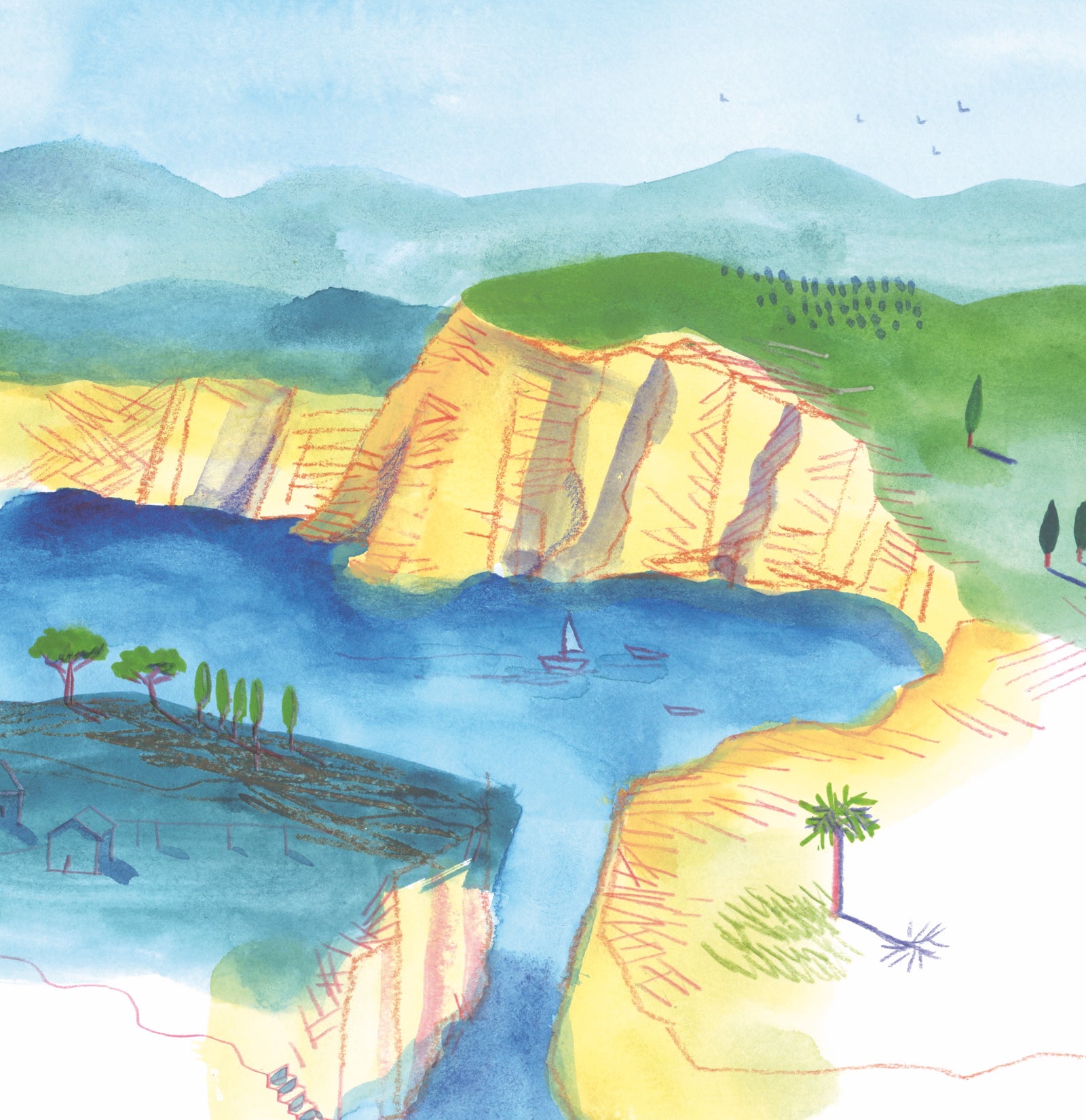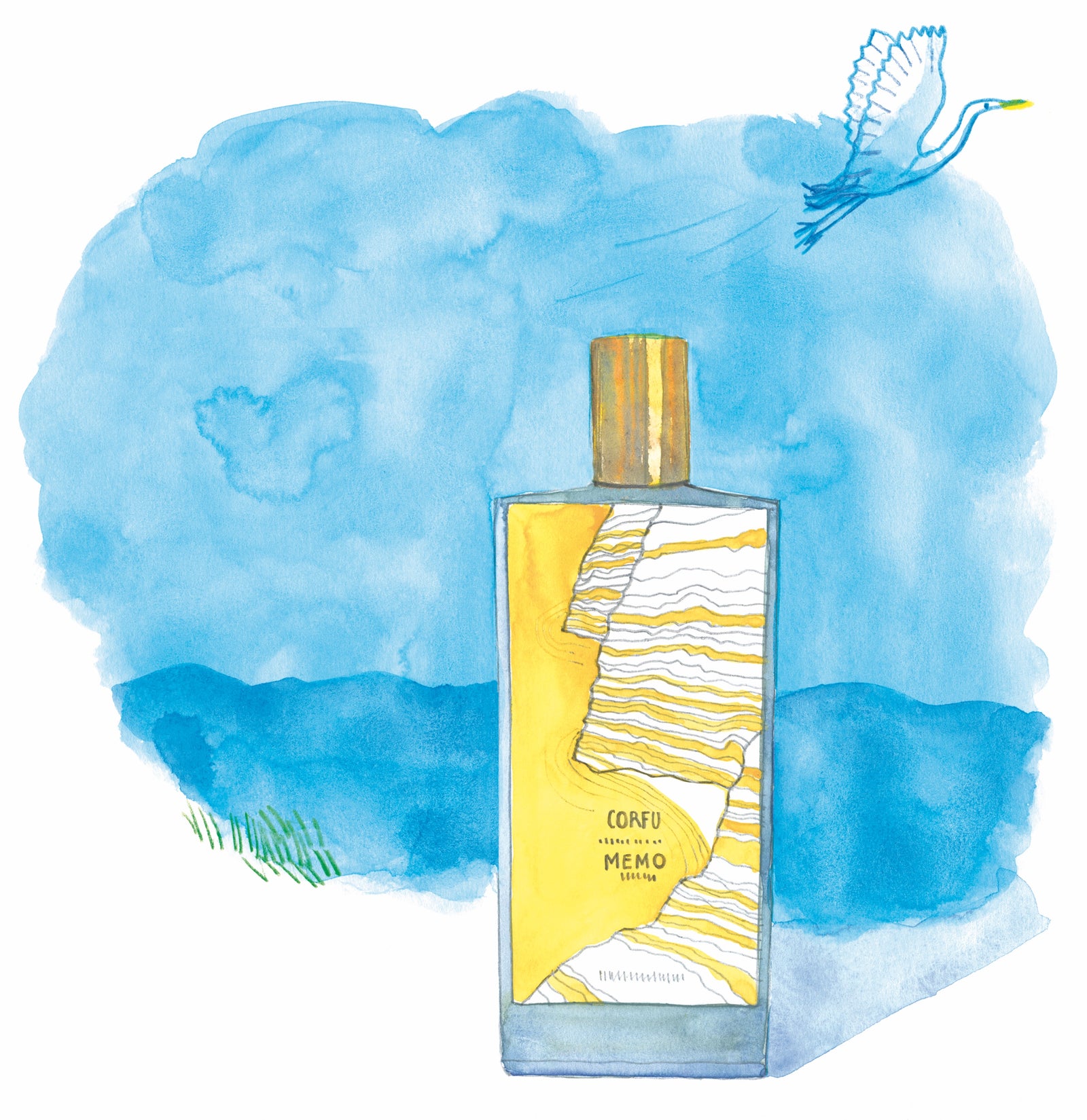 An artist, illustrator and graphic designer, she has also taught in the design and applied arts department for over twenty years. She is passionate about drawing and words, and enjoys illustrating texts by contemporary authors. She has envisioned the destination of the Corfu fragrance in a palette of blues and ochres, like a sketchbook of quintessentially Greek landscapes – an object she cherishes above all else, as a great lover of travel stories.